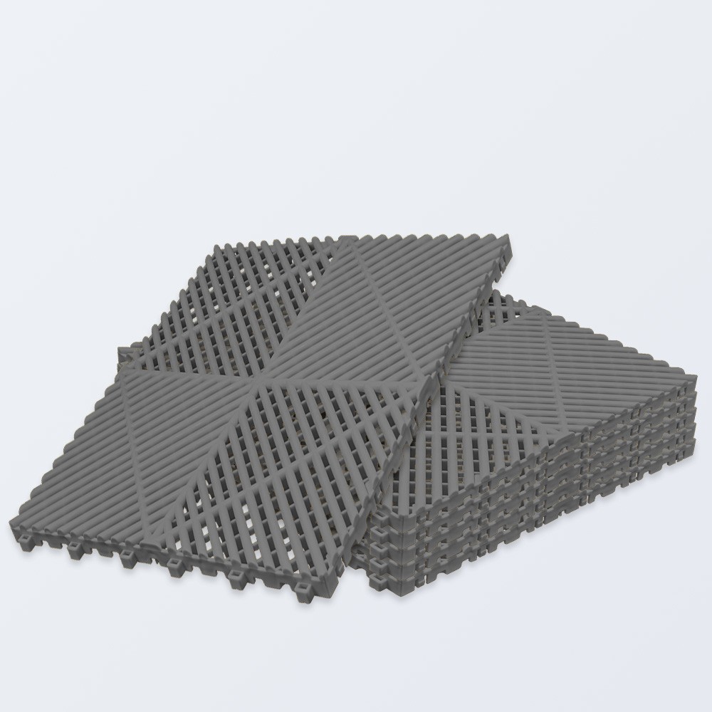Die robusten Kunststofffliesen aus Polypropylen tragen mühelos Fahrzeuge, Maschinen und schwere Geräte – mehrere Tonnen pro Quadratmeter sind kein Problem. Ideal für Garage, Werkstatt, Industriehalle oder Messestand.