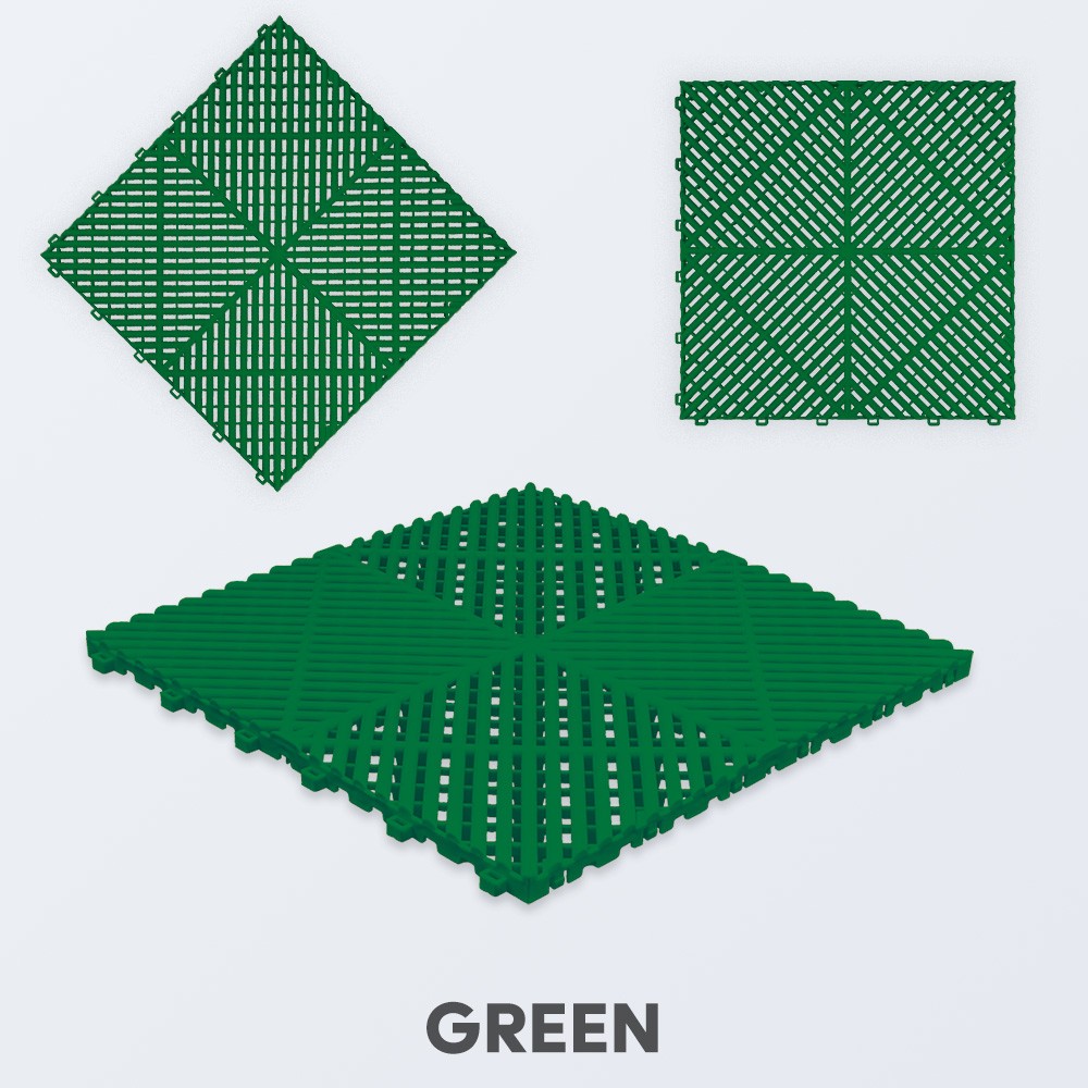 Die robusten Kunststofffliesen aus Polypropylen tragen mühelos Fahrzeuge, Maschinen und schwere Geräte – mehrere Tonnen pro Quadratmeter sind kein Problem. Ideal für Garage, Werkstatt, Industriehalle oder Messestand.