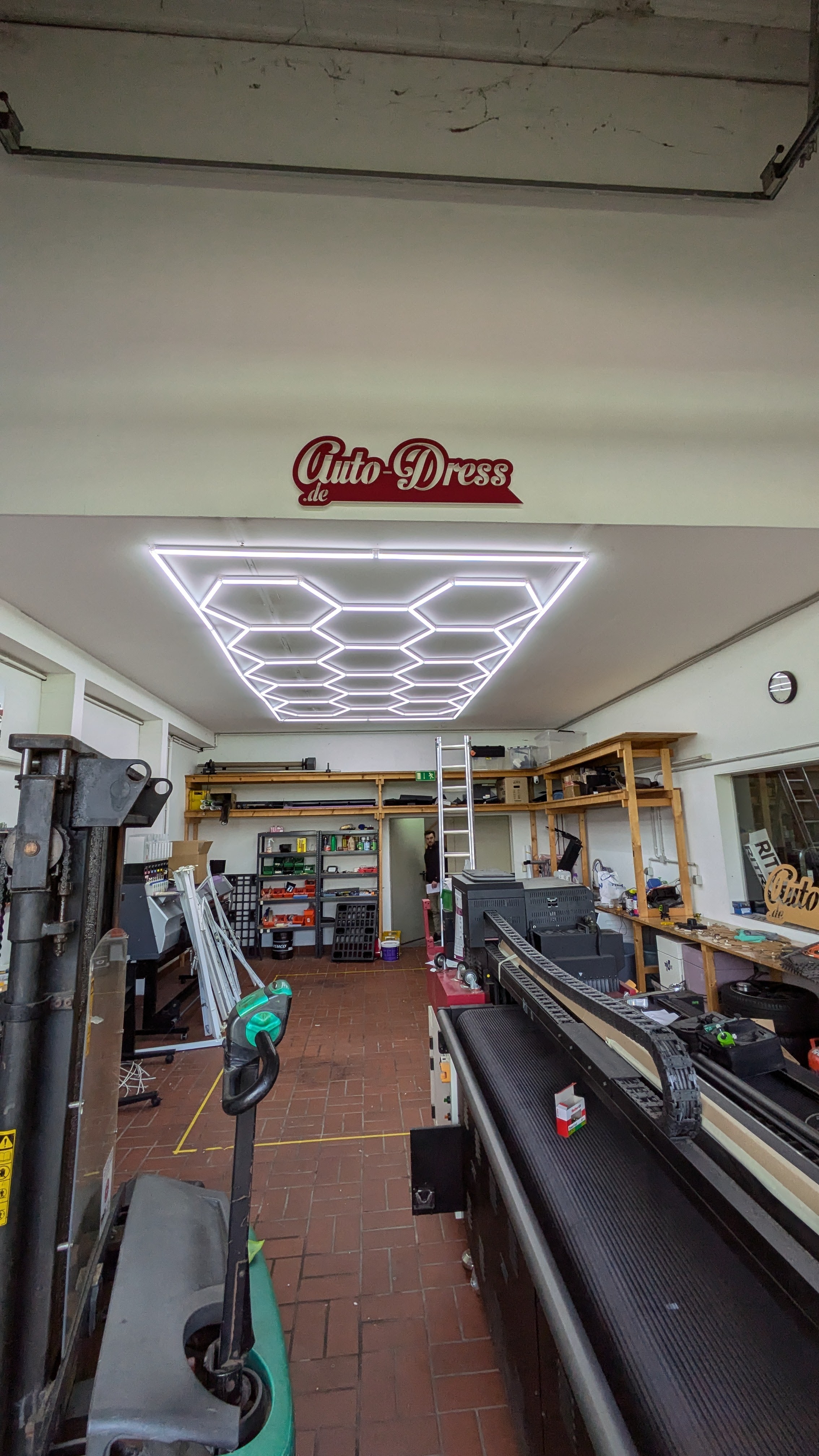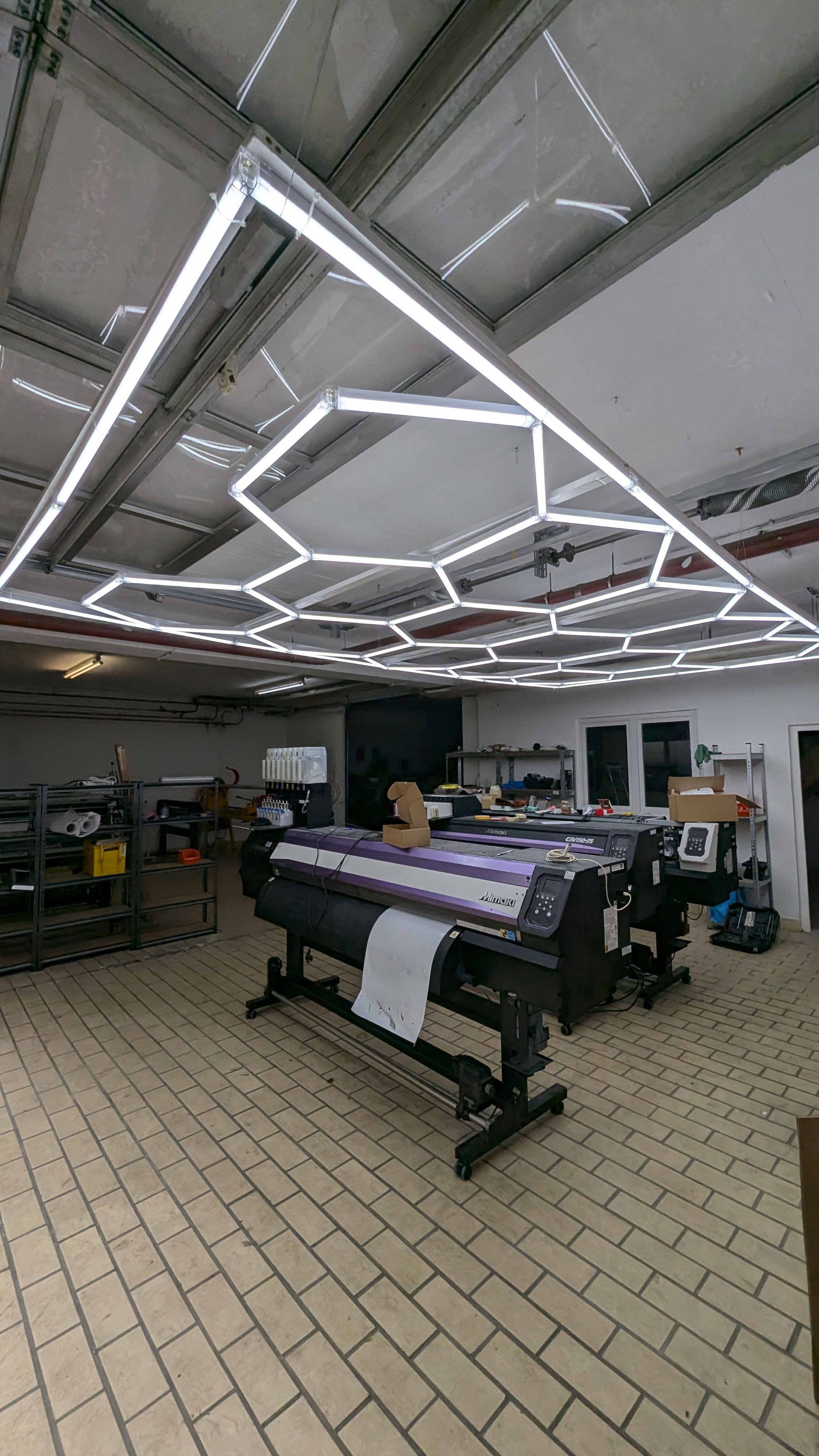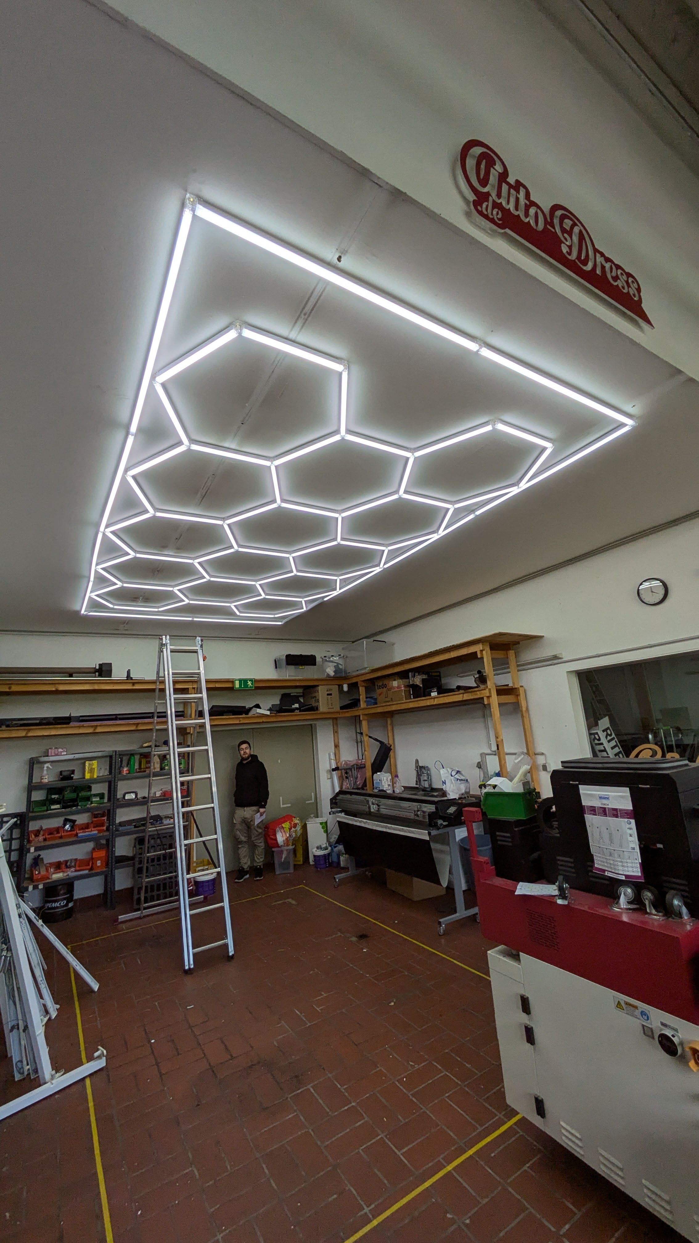 LED Hexagon Decken-Beleuchtung in Waben-Optik in 485 x 245cm für Werkstatt, Garagen & Einzelhandel