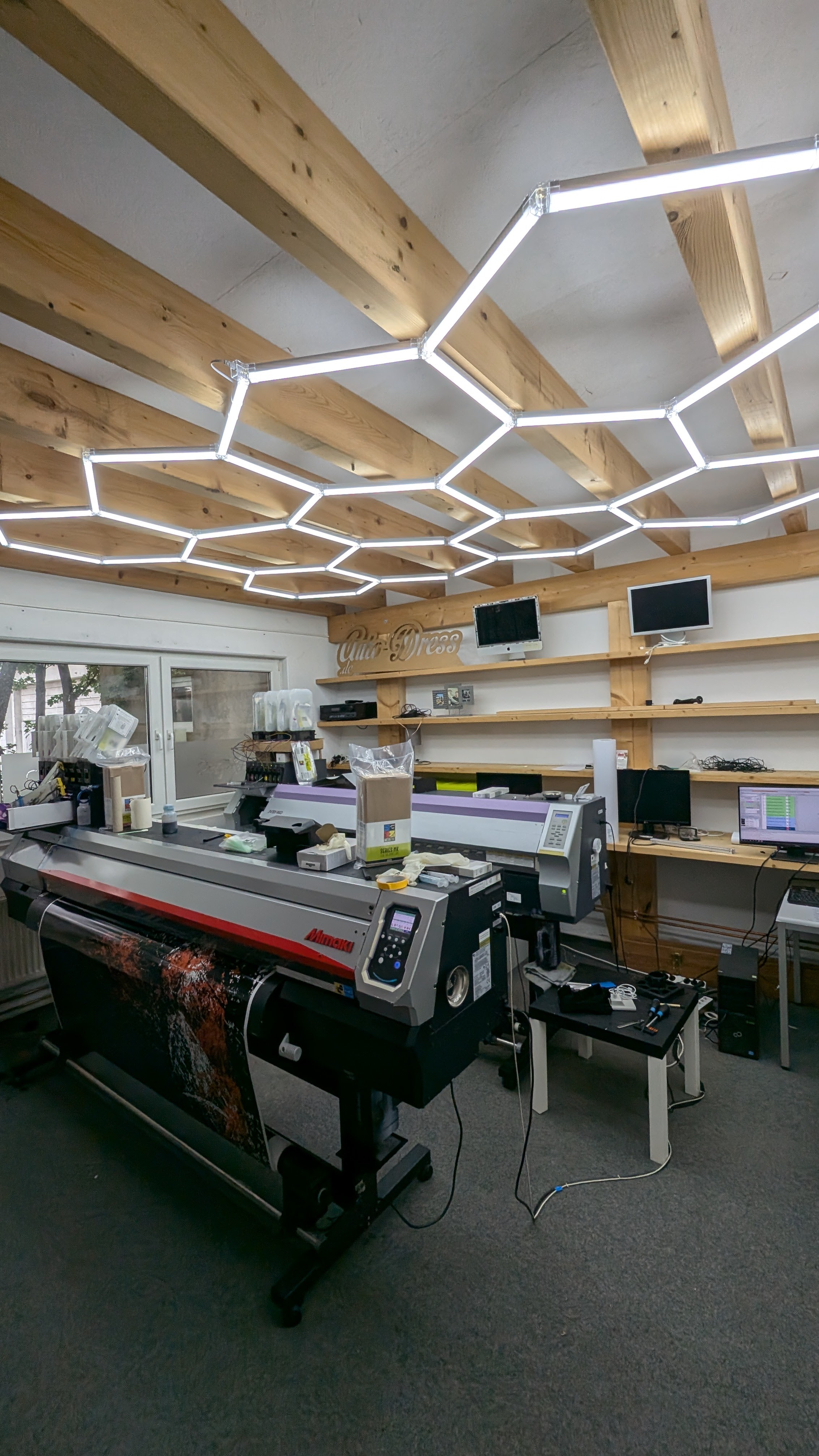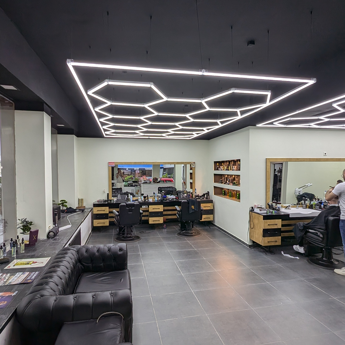 Unsere LED Hexagon Deckenbeleuchtung in Waben-Optik ist die ideale Lösung für optimale Ausleuchtung in verschiedenen Arbeitsbereichen. Perfekt für Werkstätten, Garagen, Showrooms, Friseursalons und Werbetechniker, sorgt sie für professionelle Lichtverhältnisse.